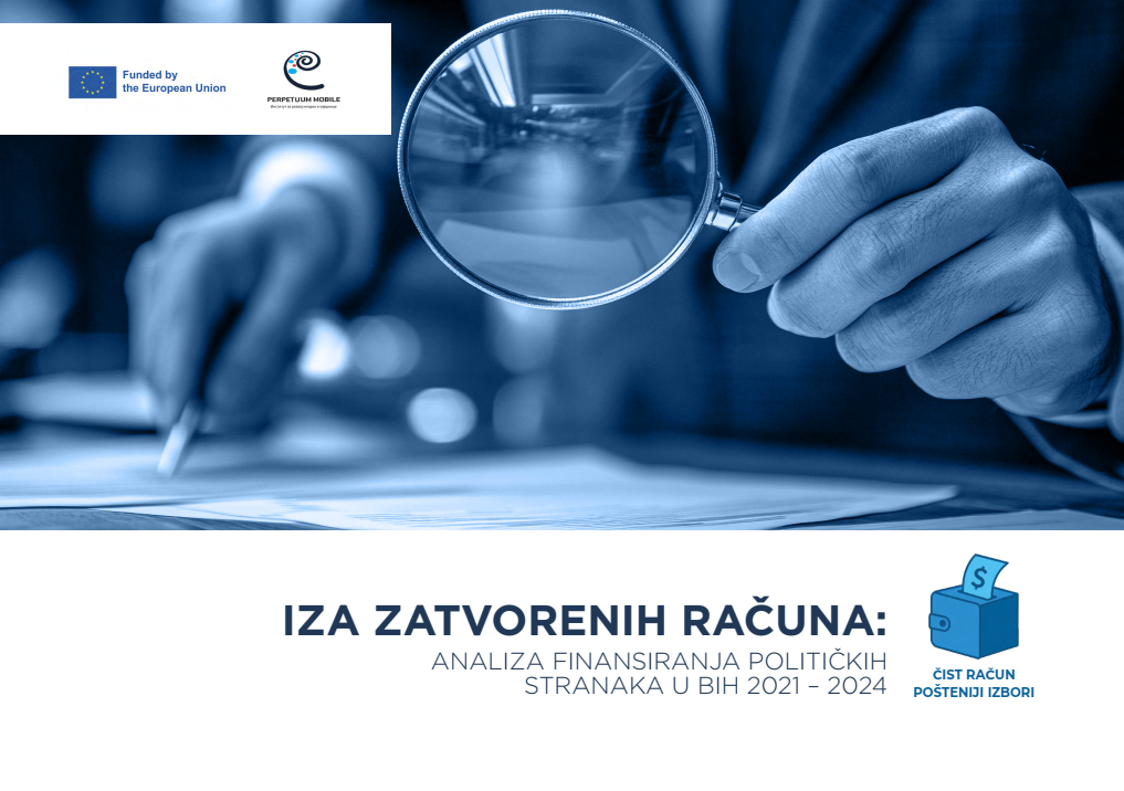 Perpetuum Mobile – Institut za razvoj mladih i zajednice objavljuje analizu „Iza zatvorenih računa: Analiza finansiranja političkih stranaka u BiH 2021–2024“, koja donosi sveobuhvatan pregled izvora prihoda i strukture rashoda političkih subjekata u Bosni i Hercegovini u četverogodišnjem periodu.